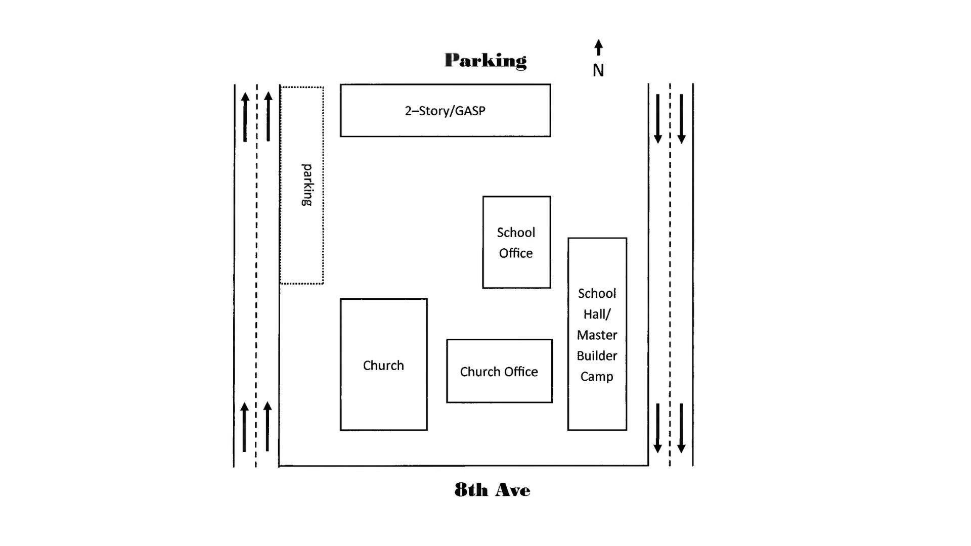 New Traffic Pattern: Next Sunday, September 1, we will have a new traffic pattern for exiting the campus. If you have been at Servants for more than four years, you probably remember when the entrance and exit were one way; that pattern will resume. You will still enter the paved driveway on the west side of the campus, park along the side or at the back, then when exiting, head toward the east side of the campus and exit via the gravel driveway. See the diagram below for more clarity.